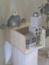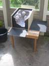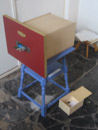 Voordracht gedichten, kistjes en foto-film installatie in leeg dijkhuis